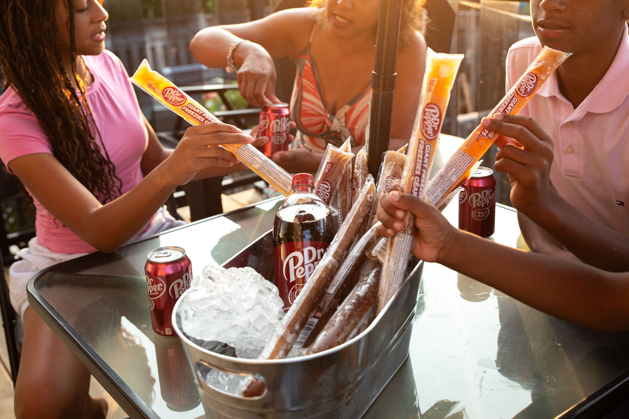 Chill out with Dr Pepper-flavored Freezie Popsicles! Enjoy the bold, fizzy sweetness of your favorite soda in a fun, frozen treat.
